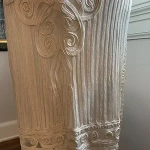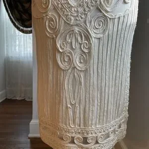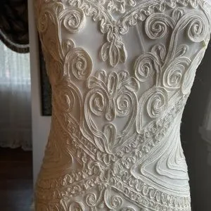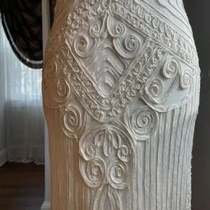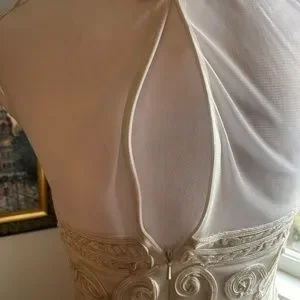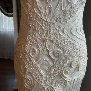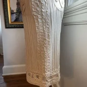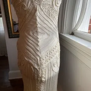 All sides photographed up close. It is form fitted and gorgeous! Length 37" from shoulder to hem. Photos of across bust, shoulders, hips.