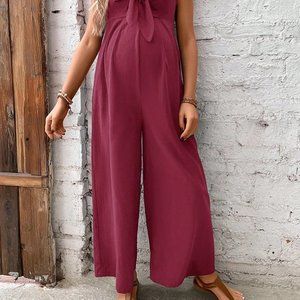 Burgundy Casual Womens Maternity Knot Front Cami Jumpsuit