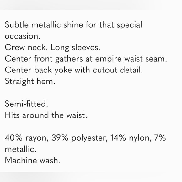 Rayon, polyester, spandex, metallic.