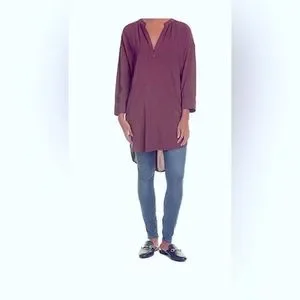 MICHAEL STARS 3/4 SLEEVE SPLIT NECK TUNIC PURPLE SMALL NWOT