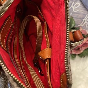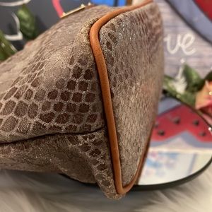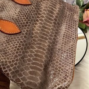 EUC A vintage Dooney in a scaly python kind of material. Please review all photos for descriptions and conditions before bidding or purchasing. Can be a crossbody but this one is missing a strap, you can put your own sling or strap as there’s a hardware at each side of the bag to put it. Preloved
