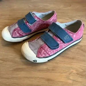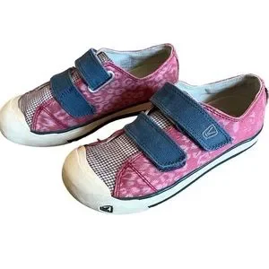 Keen size 2 Coronado w/ velcro straps pink leopard patten plaid, canvas sneakers