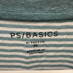 PacSun PS Basics Teal Blue Men Stripe Striped T-Shirt Medium Cotton