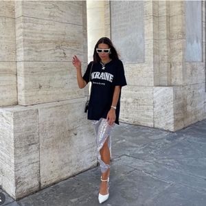 Semi-sheer high rise sequin skirt with elastic waistband. Side slit at hem. Unfinished trim. Tonal lined interior.