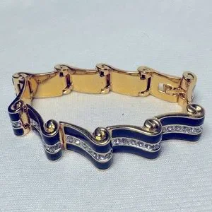 Swarovski π€©HOST PICK π€©gold bracelet with black enamel and crystal accents USED