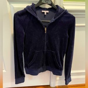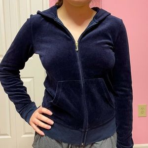 Juicy Couture Y2K rhinestone navy blue velvet Zip Up Hooded Jacket