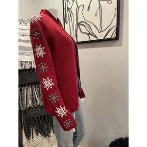 Eddie Bauer Fair Isle ❄️ Full Zip Front Red Sweater Cardigan Sport Sz M