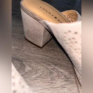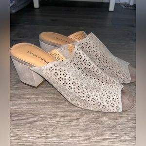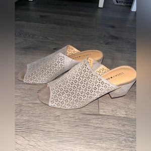 Lucky Brand Perforated Design Grey/Tan Colored Heels Size 8.5 M