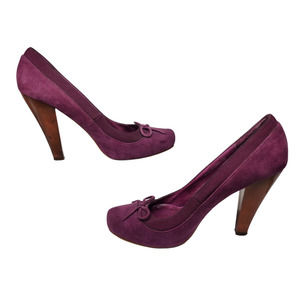 Aldo Shoes Womens 39 8.5 Purple Suede Bow Tie Heels Closed Toe Dressy Cone Heel