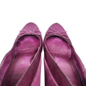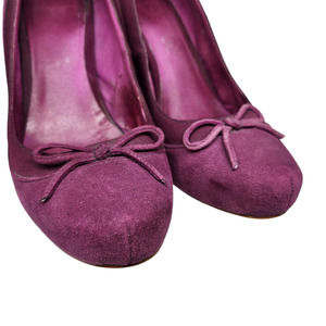 Good condition super cute purple suede heels with a bow tie accent by Aldo in a womens EU 39 or 8.5 US per the size chart directly from their website. Some wear shown on the exterior suede, more specifically the backs of the heels, some on the wood like heel backs, and some wear on the insoles shown in photos as well.