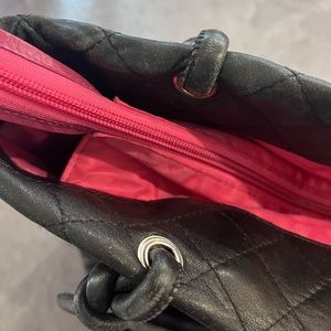 Well loved authentic Chanel. One loose rivet as pictured. Dimensions: 11x10x6inches (HxWxD). Width and depth measured on bottom of bag.