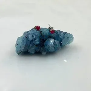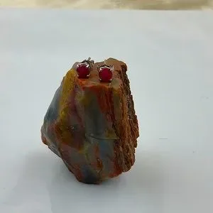 Vtg. Silver Four Prong Beautiful Ruby Earrings With The Post Centered on The Ruby Gemstone Of The Earrings. Ruby Gemstones Are Faceted. Excellent Condition.