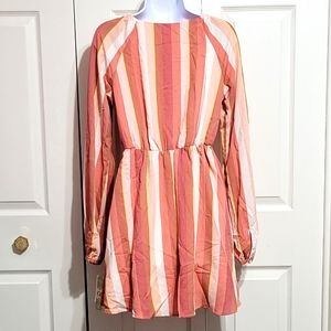 NWT Gianni Bini Long Sleeve Dress Flowey Pastel Striped Coral Peach Pink…