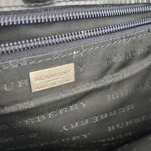 Pre owned Burberry London Plaid Tote Bag. Navy dark blue exterior with black interior lining. Has a functional magnetic clasp. Exterior has some scuffing and white areas on back. Some small corner wear. Some scuffing along one side of bag. Very clean interior with Burberry all over it. Comes with an inside zip pocket. Very spacious. The handles are in good condition. On one end of the back handle there is a small separation (see picture). This bag is pre loved but has lots of life left.