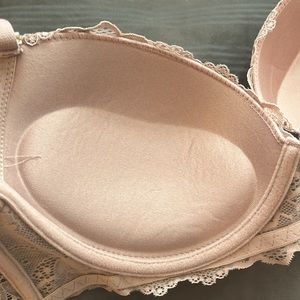 NWOT, this brand new Jessica Simpson lace bra a is padded push-up bra. Triple closure hook in back, adjustable straps in a gorgeous, dusty, rose/light taupe/nude color.