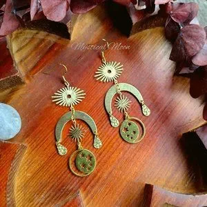 Cosmic Moon Chandelier Earrings with Sun & Moon Handmade Witchy Jewelry