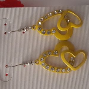 Nwt fashion earrings color yellow double heart earrings