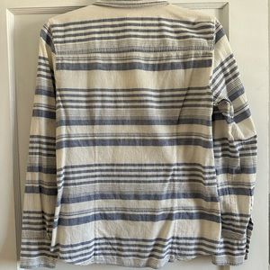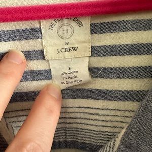 Blue and white striped long sleeve button down shirt. The Perfect Shirt. Perfect for beach nights! Size 8. By J Crew.