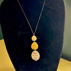 Large bead multi lengths necklace on black leather. JJ I’ll