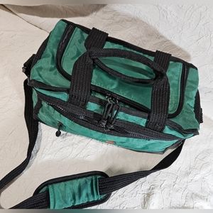 Perfect for those vintage Pepsi collectors. Soft cooler is duffelbag style with two short handles and long adjustable strap. Lunchbox has a zip main closure, top and front zip pockets, with a slip pocket on back. Durable rubber bottom. Overall good vintage condition, small rip near strap. Please see photos for more details.