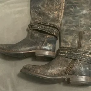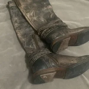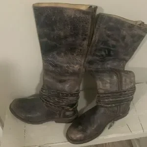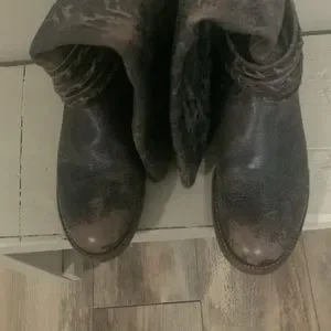Fabulous distressed black leather boots size 8 soft leather hardly worn zip in back and on ankle for easy on and off