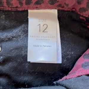 Nice stretch jeans, animal print purple and black colors, size 12. Ankle skinny.