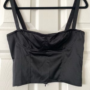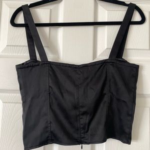 Black satin top with corset stitching detail. Cropped and fitted. Worn once! Fits true to size.