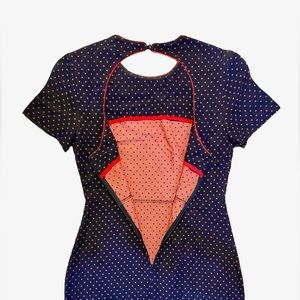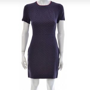 NWOT Sandro Paris Size 1 Navy and Red Embroidered Cutout jacquard mini dress