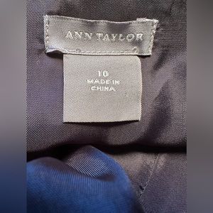 Ann Taylor navy blue dress with metallic silver embroidered design. Spaghetti straps, side zip. 100% cotton dress, fully lined -100% acetate.