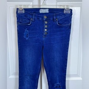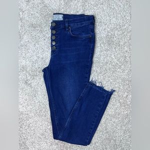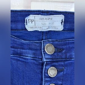 Free People Skinny Jeans w/ Distress, Dark Blue, Size 27
