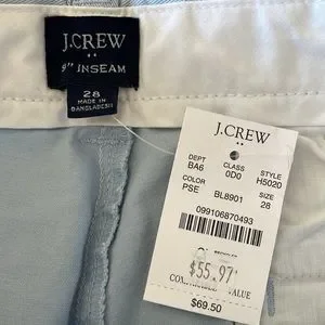 NWT J. Crew Men’s 9” Shorts in size 28. J. Crew cotton chino shorts available in light blue and green. Please specify which color you are interested in. New with tag