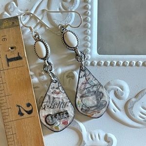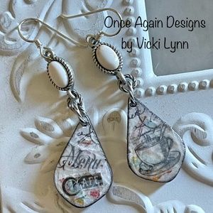 - OOAK artisan wooden teardrops with multiple layers of torn Washi tape create this cozy cafe themed pair.