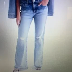 Express two tone destructed flare jeans size 6