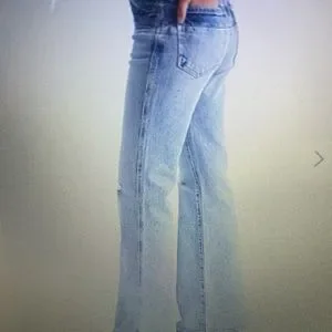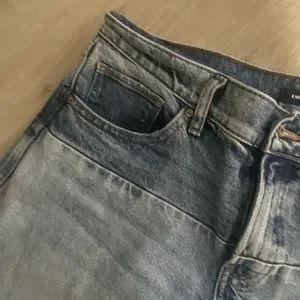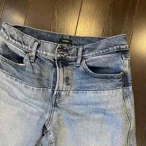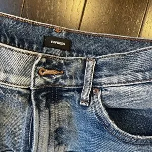 Two tone flare jeans from express. Destruction on knees. 30” inseam