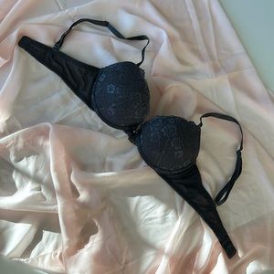 H&M Gray Lace with Delicate Lace Trim Underwire with Padded Push Up Bra 32B
