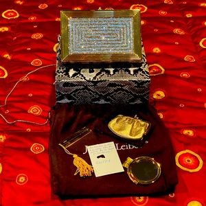 Judith Leiber clutch purse, strap doubles as a belt or necklace comb and mirror.