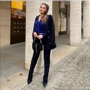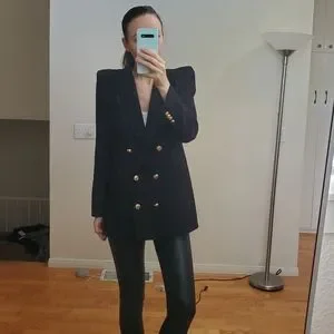 New Zara Black Shoulder Pad Double Breasted Blazer