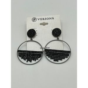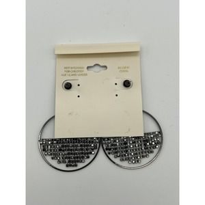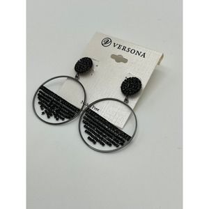 New Black Hollow Out Round & Rhinestone Hoop Earrings by Versona