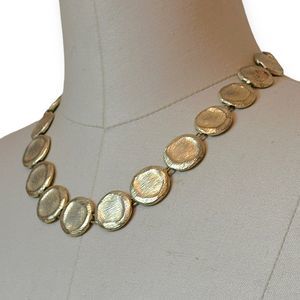 Vintage Hammered Gold Tone Metal Necklace And Earrings Set, circa 1980s-1990s.