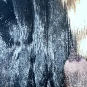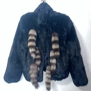 Rabbit Fur Zip Up Mob Wife Fur Coat With Tail Tassels Black M