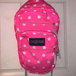 Jansport large backpack with 4 zippered areas to hold a lot. Key & bottle too