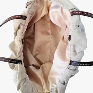 Scrunched/ruched at the top around the opening