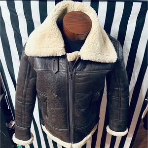 Vintage Aviator Bomber Type B-3 Style Shearling Leather Jacket