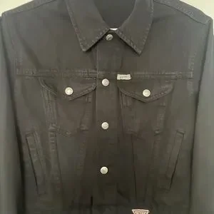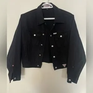Women’s size small vintage, perfect , new condition no fading guess black jean jacket short waist crop style with slightly baggy arms