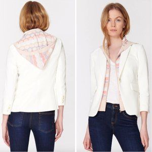Veronica Beard's lightweight Lupe dickey features scalloped striped print with peach, cream and pale lavender with a hoodie and toggles. You will love wearing this versatile dickey under any of Veronica Beard's Dickey jackets for a standout look.