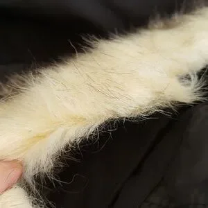 attached hood. fur trim removable.