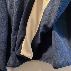 adidas Notre Dame Fighting Irish ClimaWarm Fleece Long Sleeve Blue with White letters and leprechaun logo, and white side/sleeve accents. Men’s Large. Warm and fits loosely.
