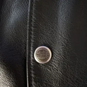 Show off your love for America and the Harley-Davidson brand with this XXL black leather vest. The vest features patches of the American flag and the iconic Harley-Davidson logo, making it the perfect addition to any biker's wardrobe. Made from high-quality leather, this vest is durable and comfortable to wear, ideal for any occasion. Whether you're hitting the open road or just hanging out with friends, this vest is sure to make a statement.