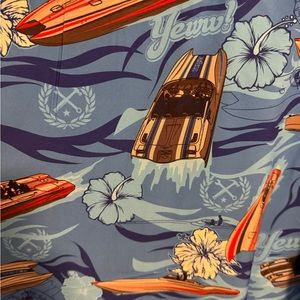 Designed for a comfortable and light wear, the Teague x Dixxon Short Sleeve Button-Up is a must-have for any performance boater. This soft, woven party shirt features a vivid print featuring some of Teague's most awesome powerboat creations. The shirt has a generous length for a perfect lay with a stretch. Details like a classic fit, collar stay buttons, and a curved hem give this shirt the versatility to address any situation. From on the boat, to the dock, to the after parties, you are ready to go!