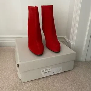 L’intervalle Red Suede Heeled Booties👢💃🌶️ Size 38